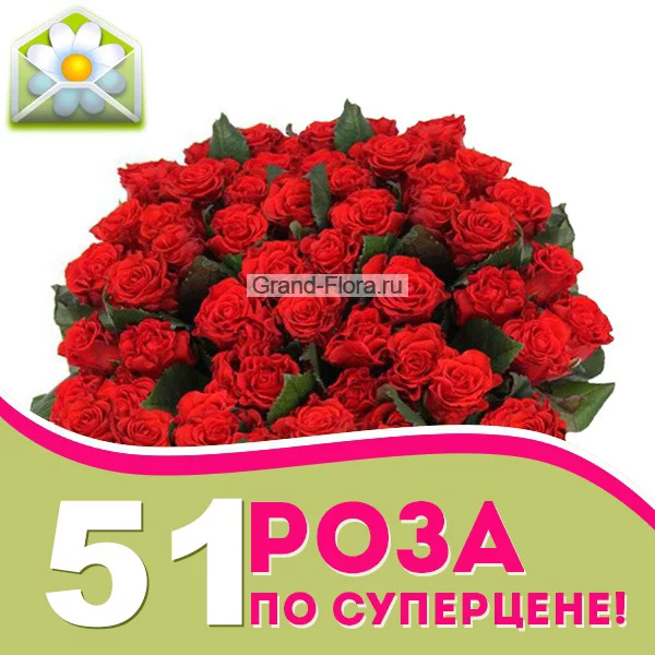 В знак любви, благодарности или без особых поводов, букет из 51 розы* будет уместным в любой ситуации.Можете быть уверены, это самое лучшее средство приумножить хорошие эмоции!