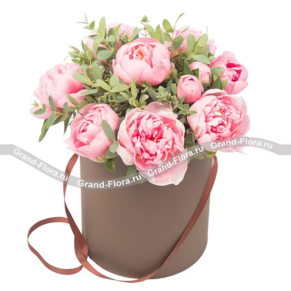 Розовая долина - коробка с пионами и зеленью